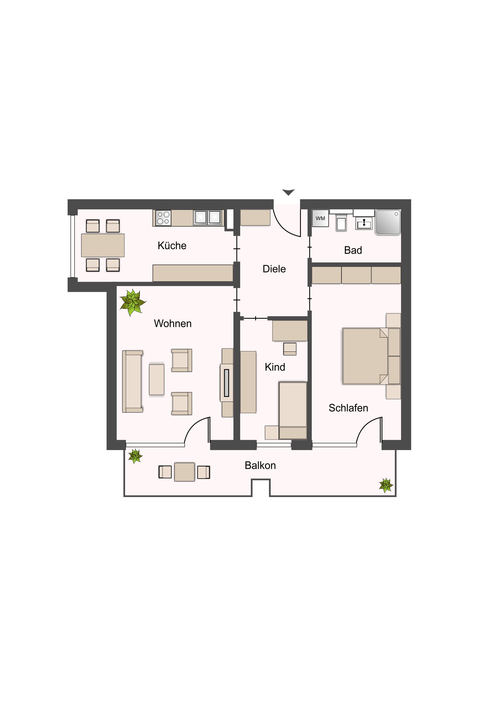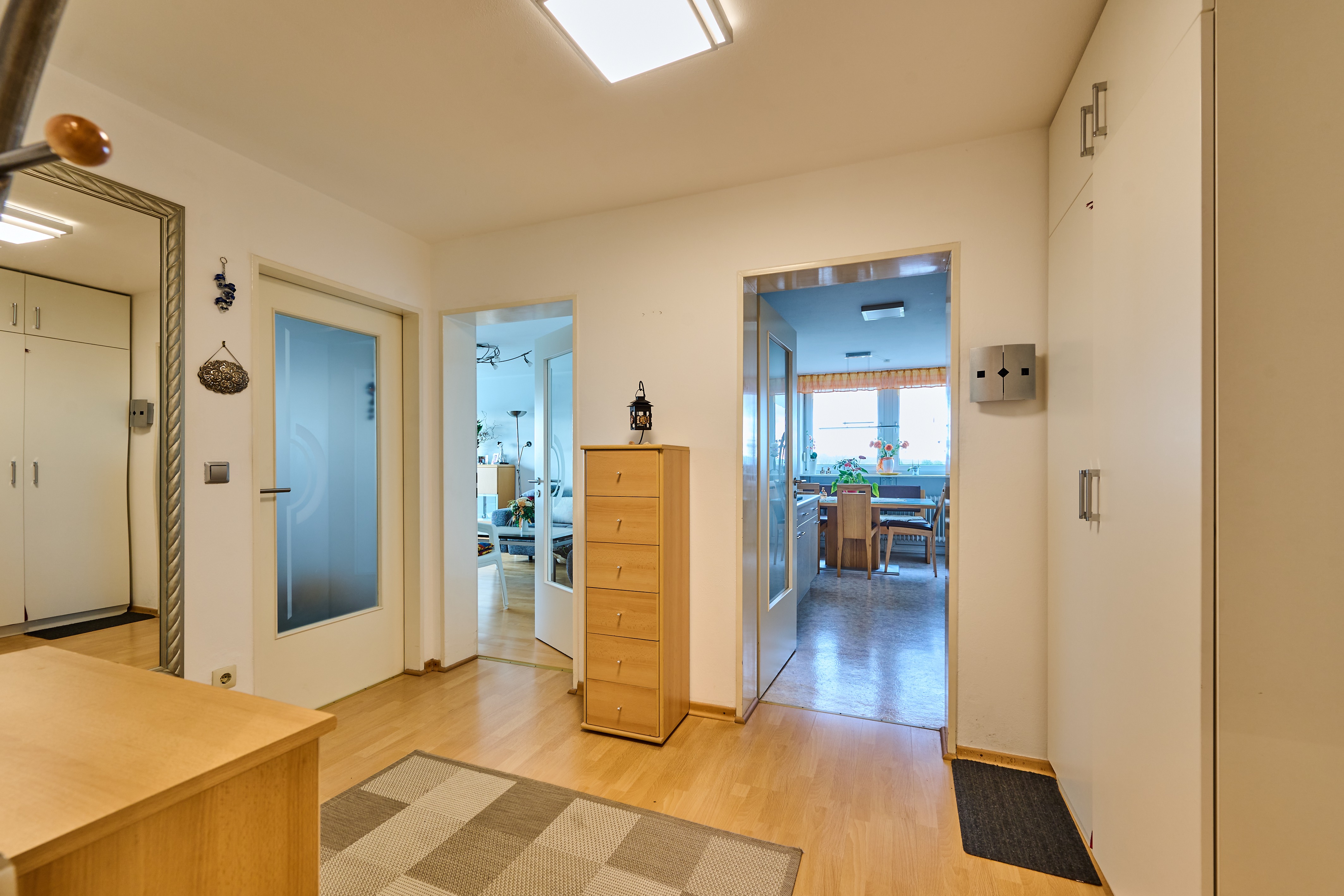 Beim betreten der Wohnung werden Sie von einer geräumigen Diele begrüßt, die mit einer Garderobe ausgestattet ist und den Eingang zu den verschiedenen Räumlichkeiten bildet.