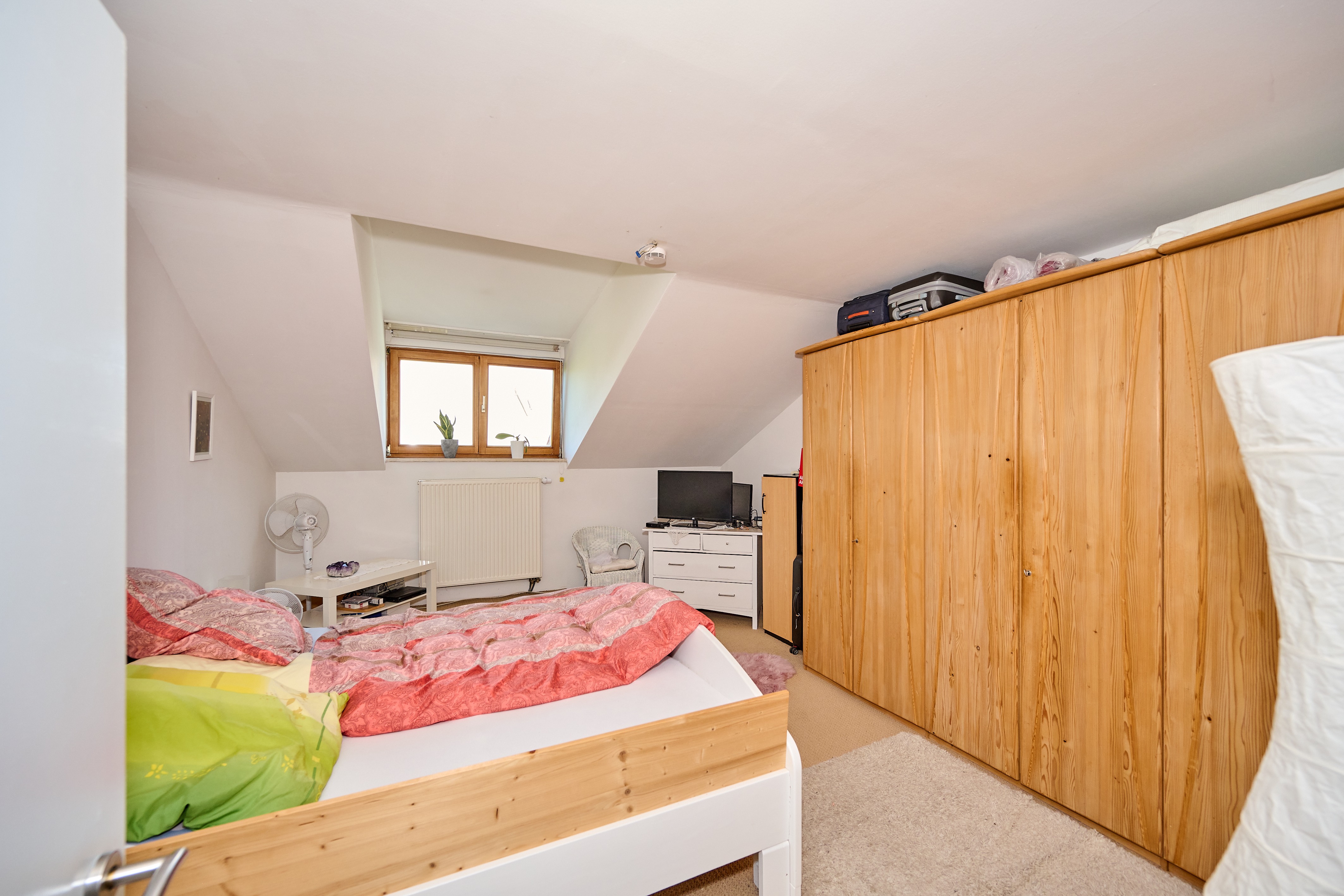 Auf der rechten Seite der Diele befindet sich das geräumige Schlafzimmer, ein Ruhepol und privater Rückzugsort, der mit ausreichend Platz für ein großes Doppelbett und einen geräumigen Kleiderschrank besticht. Gegenüber des Schlafzimmers eröffnet sich ein praktischer Abstellraum, der zusätzlichen Stauraum bietet. Ein weiterer Abstellraum ist vor dem Wohnungseingang vorhanden.