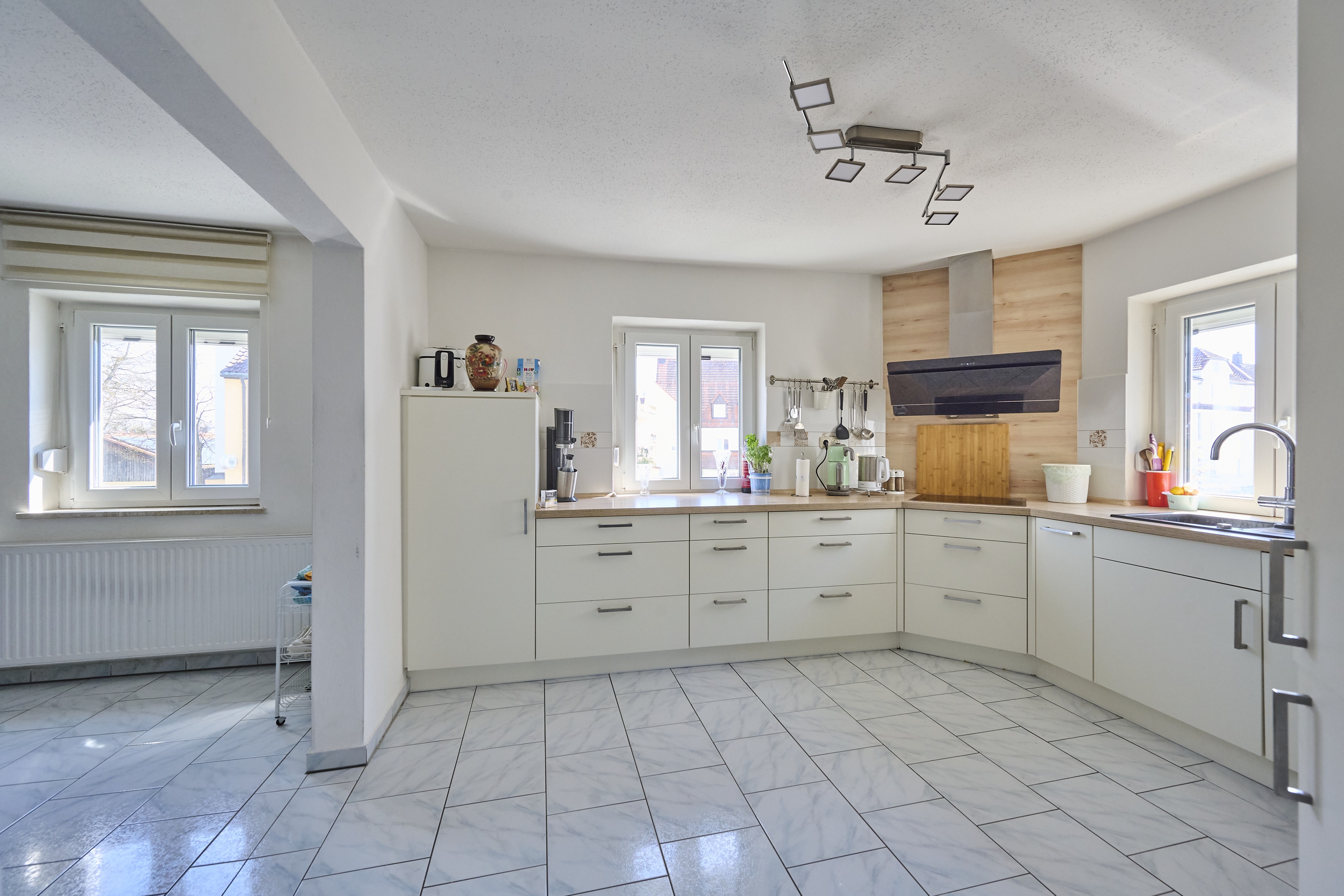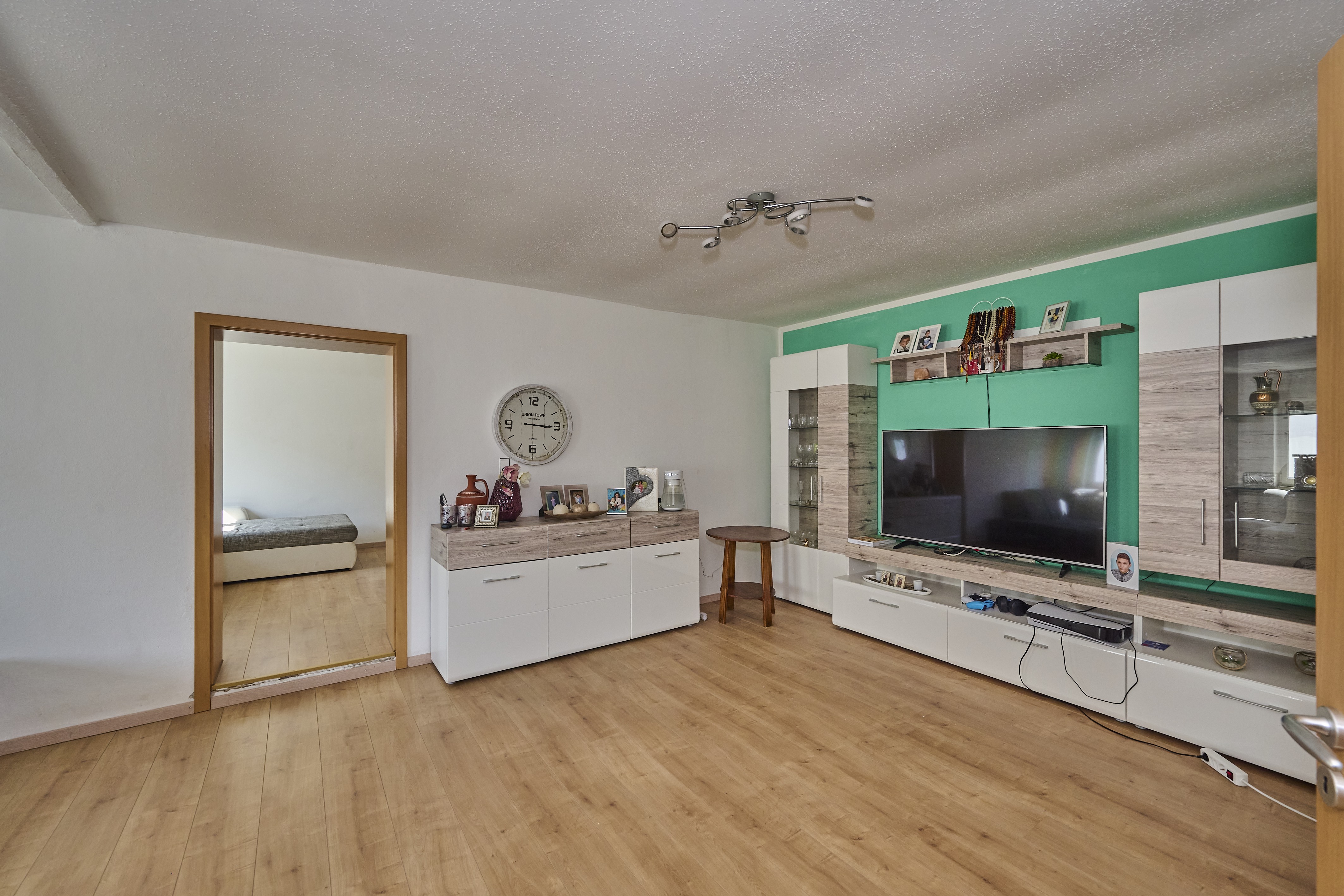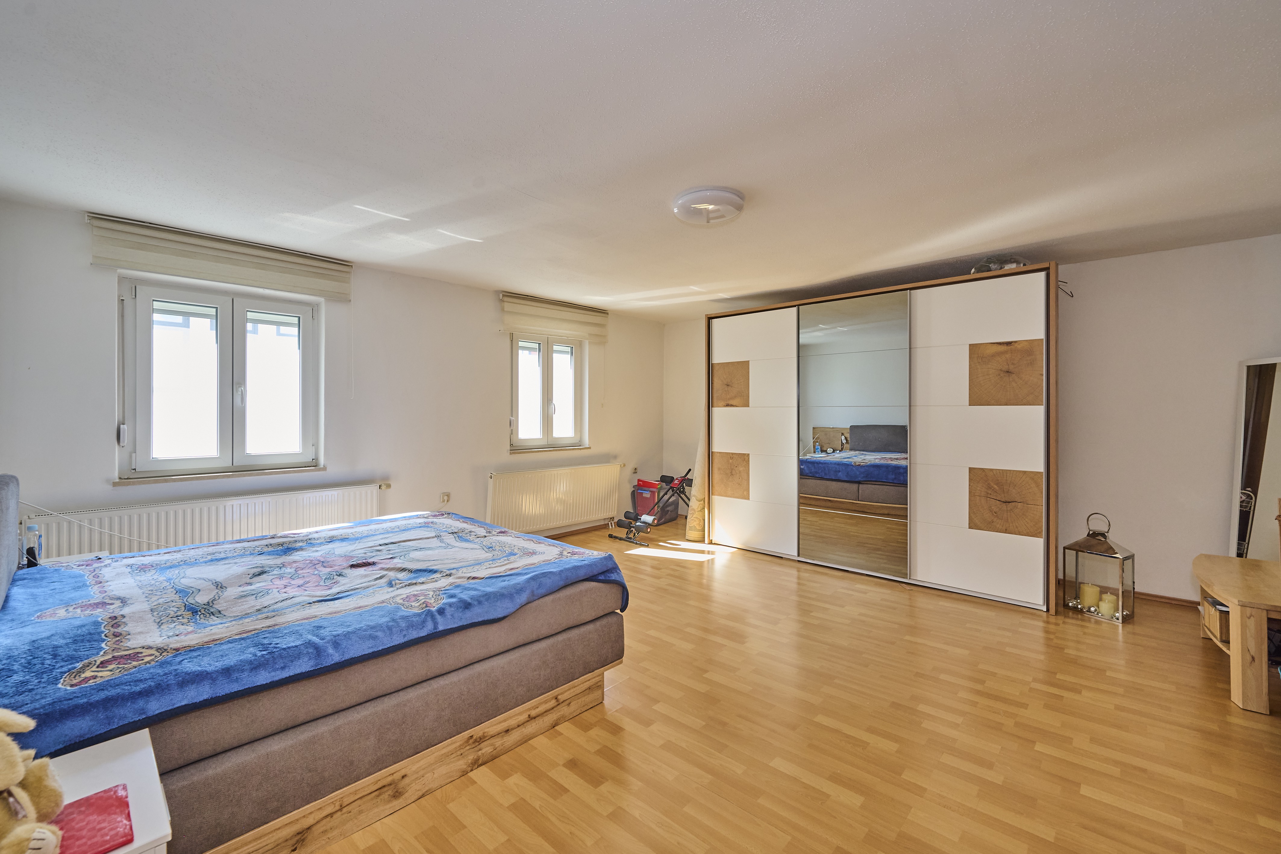 Im ersten Obergeschoss erwarten Sie ein weiteres Tageslichtbadezimmer mit Dusche, WC und Waschbecken, sowie eine geräumige Küche inklusive neuwertiger Einbauküche und angrenzendem offenem Essbereich. Das große Wohnzimmer ist mit einem charmanten Kaminofen ausgestattet und bietet einen gemütlichen Ort, um sich zu entspannen. Weiter geht es in ein Durchgangskinderzimmer oder Büro, gefolgt von einem sehr geräumigen Schlafzimmer mit ausreichend Platz für Bett, Schrank und weitere Möbelstücke. Im zweiten Obergeschoss finden Sie zwei weitere Kinderzimmer, die ähnlich groß sind und einen ausreichenden Platz für Ihre Familie bieten.