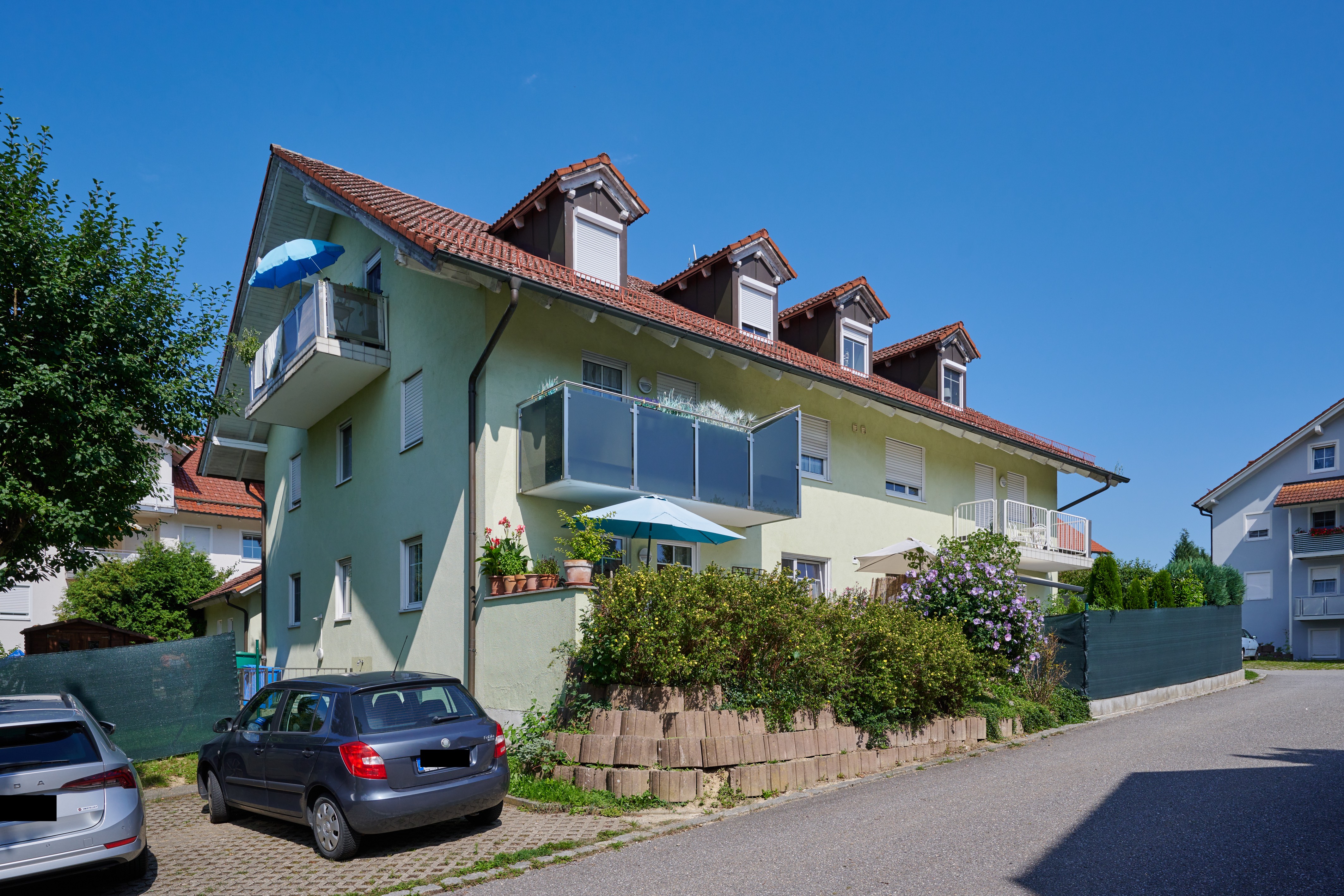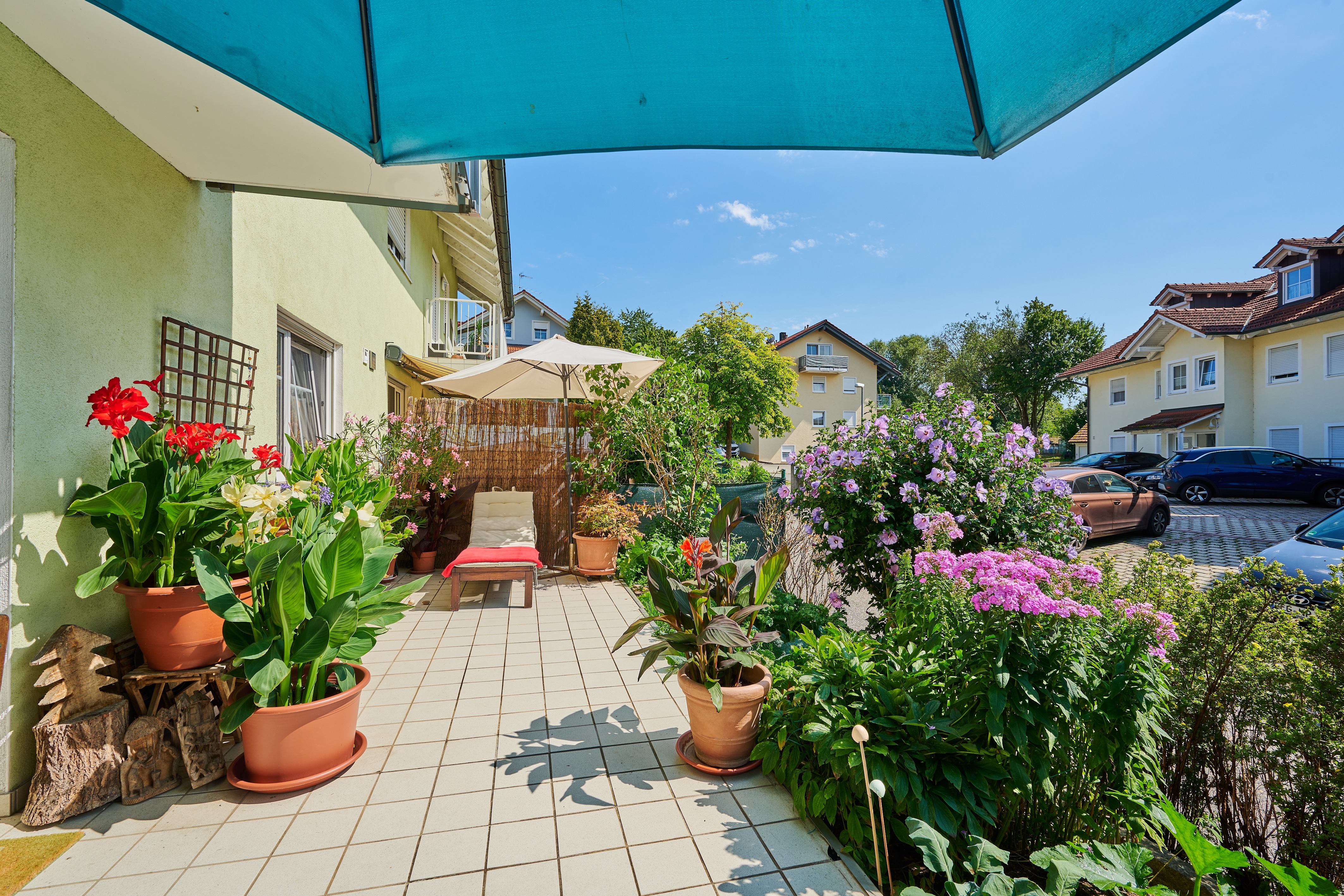 Gemeinschaftsgarten: Der liebevoll angelegte Gemeinschaftsgarten steht allen Bewohnern zur Verfügung und bietet Raum für Erholung und gemeinsame Aktivitäten.