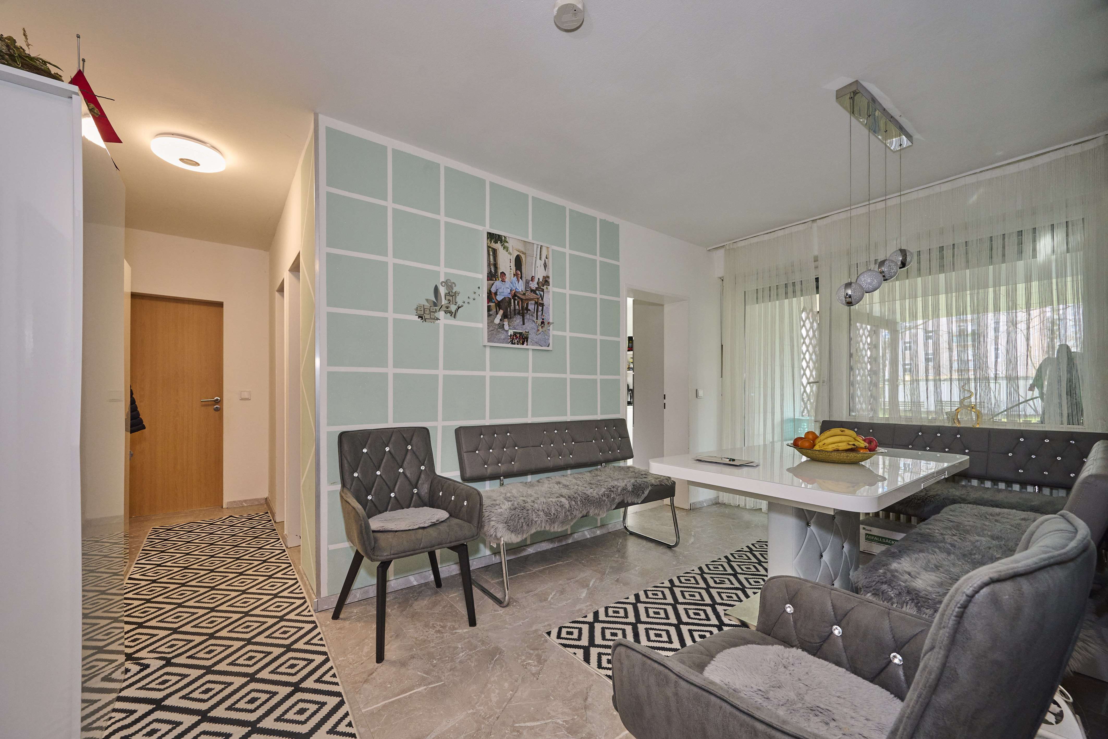 Diese großzügige 4-Zimmer-Wohnung mit einer Wohnfläche von 101 m² ist die perfekte Wahl für eine Familie, die viel Platz benötigt, oder auch für eine Wohngemeinschaft, die eine stilvolle und geräumige Unterkunft sucht. Beim Betreten der Wohnung befindet sich links das erste Kinderzimmer, welches ideal als Spielzimmer oder Arbeitszimmer genutzt werden kann. Gegenüber befindet sich das gemütliche Wohnzimmer, welches genug Platz für eine große Couchgarnitur bietet und zum Entspannen einlädt.